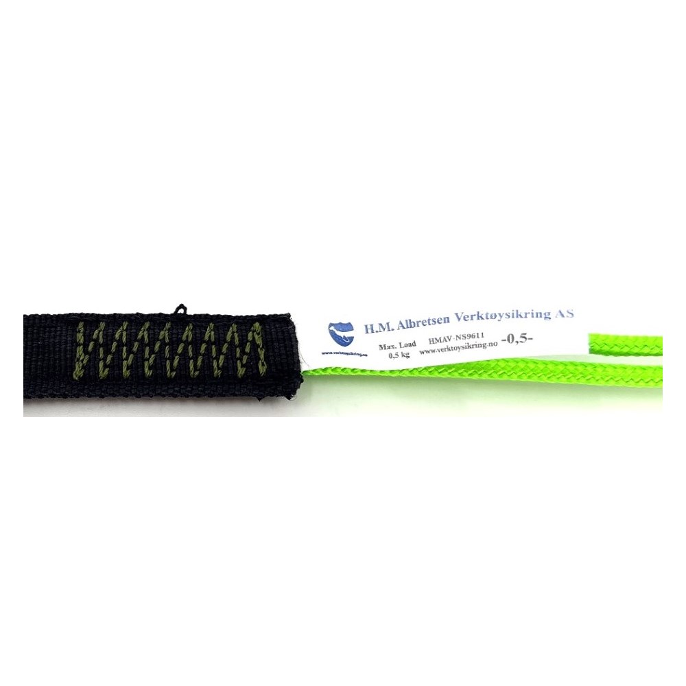 Håndleddsikring med låsbar 6 x 60 mm karabinkrok i den ene enden og justerbar løkke til håndleddet i den andre. Håndleddsikringen er beregnet for fallsikring av verktøy og utstyr med egenvekt inntil 0,5 kg.