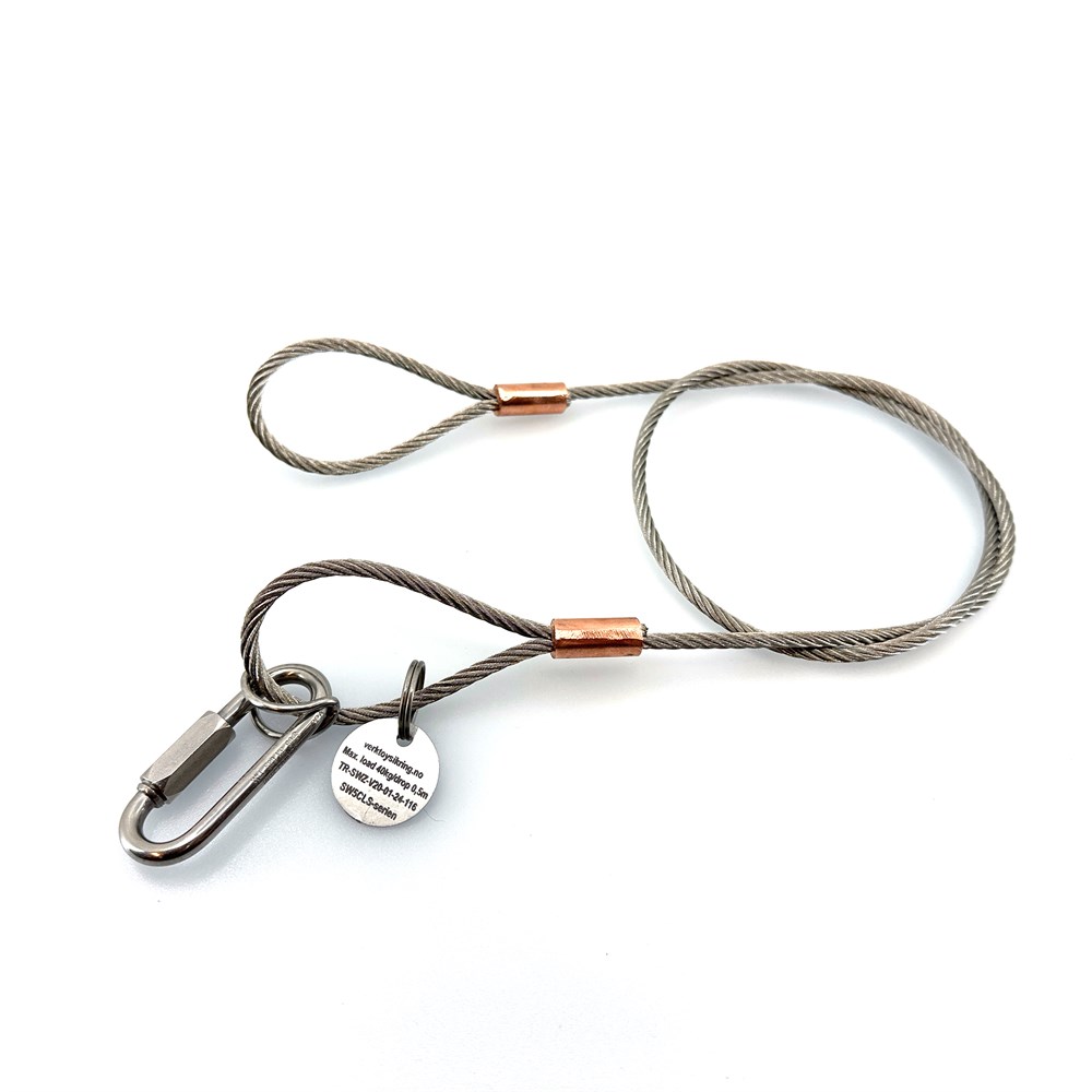 Vaier for sikring av fastmontert utstyr der det er fare for fallende gjenstander, som følge av f.eks. vibrasjon, korrosjon eller andre ytre påkjenninger.