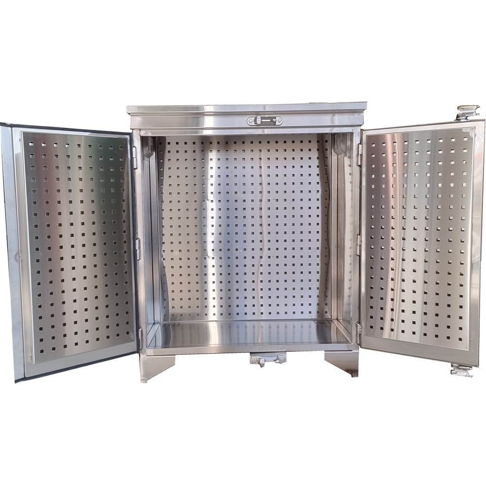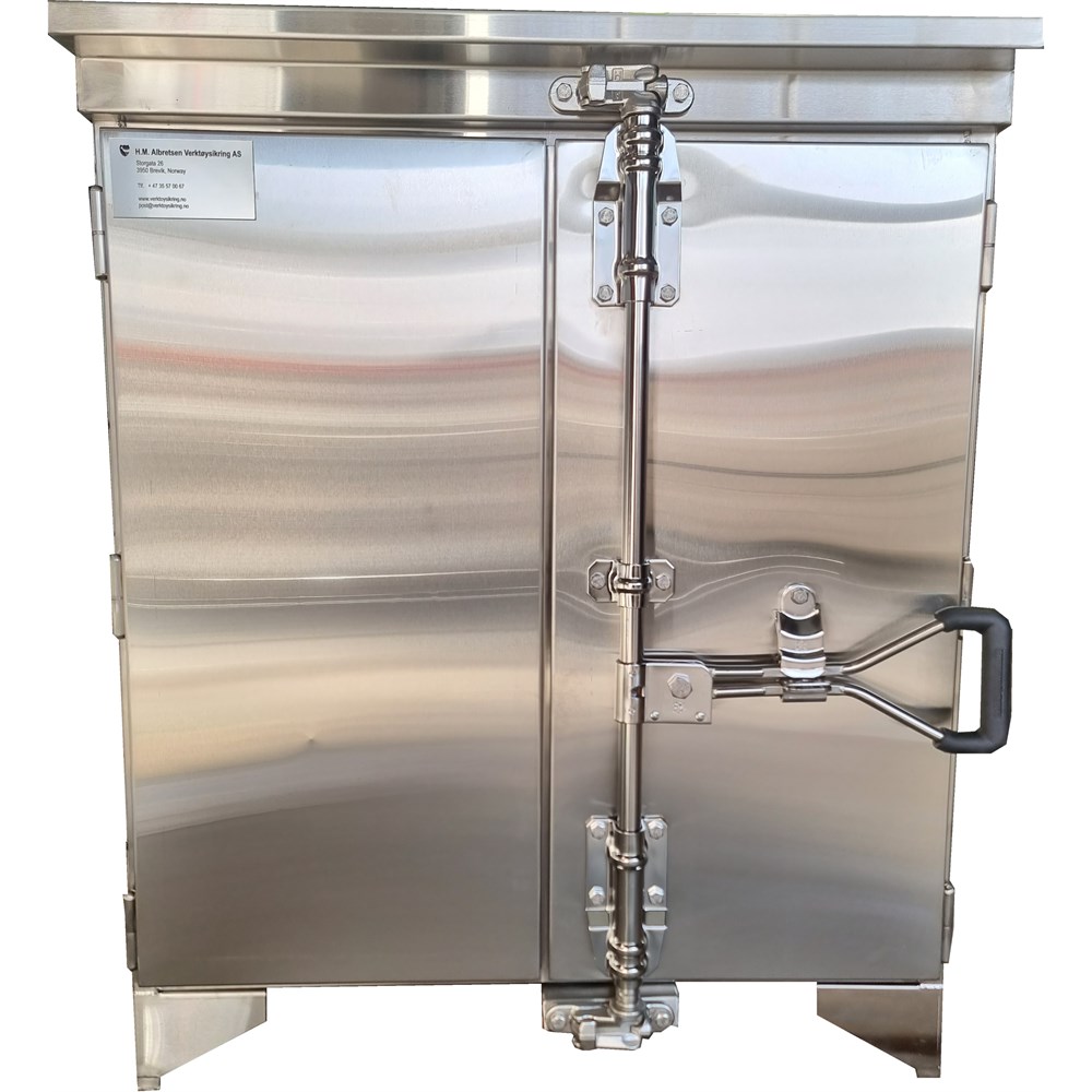 Verktøyskap i rustfri eller syrefast stålkvalitet.