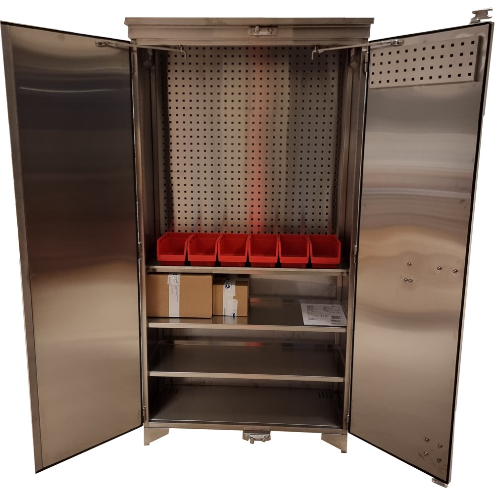 Verktøyskap i rustfri eller syrefast stålkvalitet.