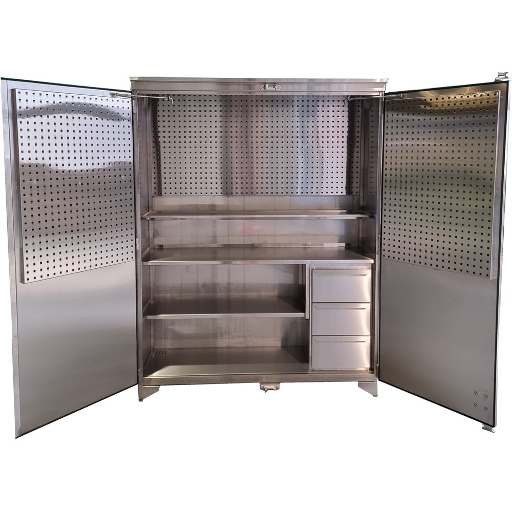 Verktøyskap i rustfri eller syrefast stålkvalitet.