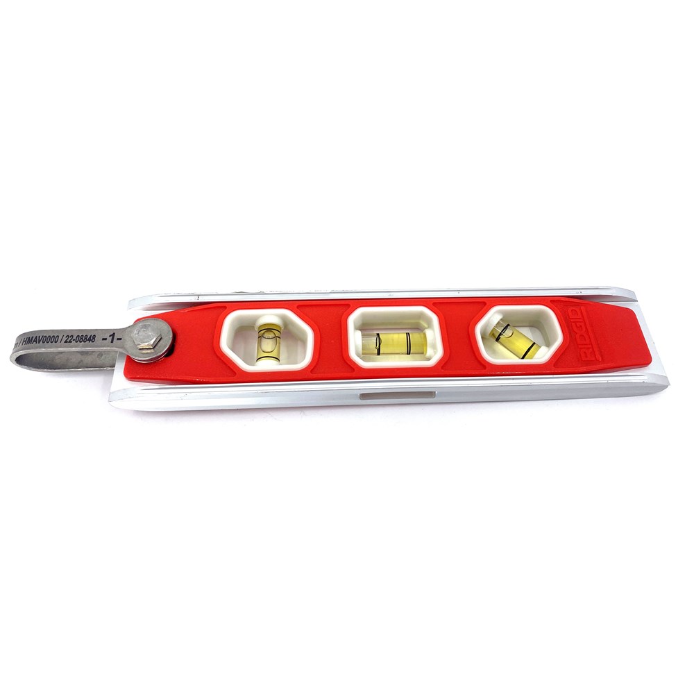 Med aluminiumsramme og en plastinnsats. Med tre libeller - en vannrett, en loddrett og en for 45° nivellering. Libellenes utforming gjør at du kan lese av fra alle kanter. Den ene anleggsflaten med innfelt magnet, den andre anleggsflaten med V-spor.