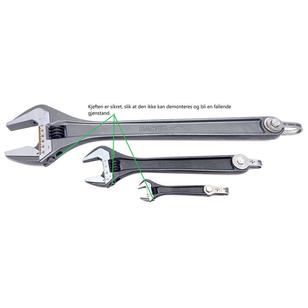 Produktet er utstyrt med et innfestningspunkt, slik at det kan sikres mot fall ved arbeid i høyden. Festebøylen er merket med serie / batch nummer, belastningsgrenser, produsent og vektgruppe. Mer info om vektgrupper finner du her.