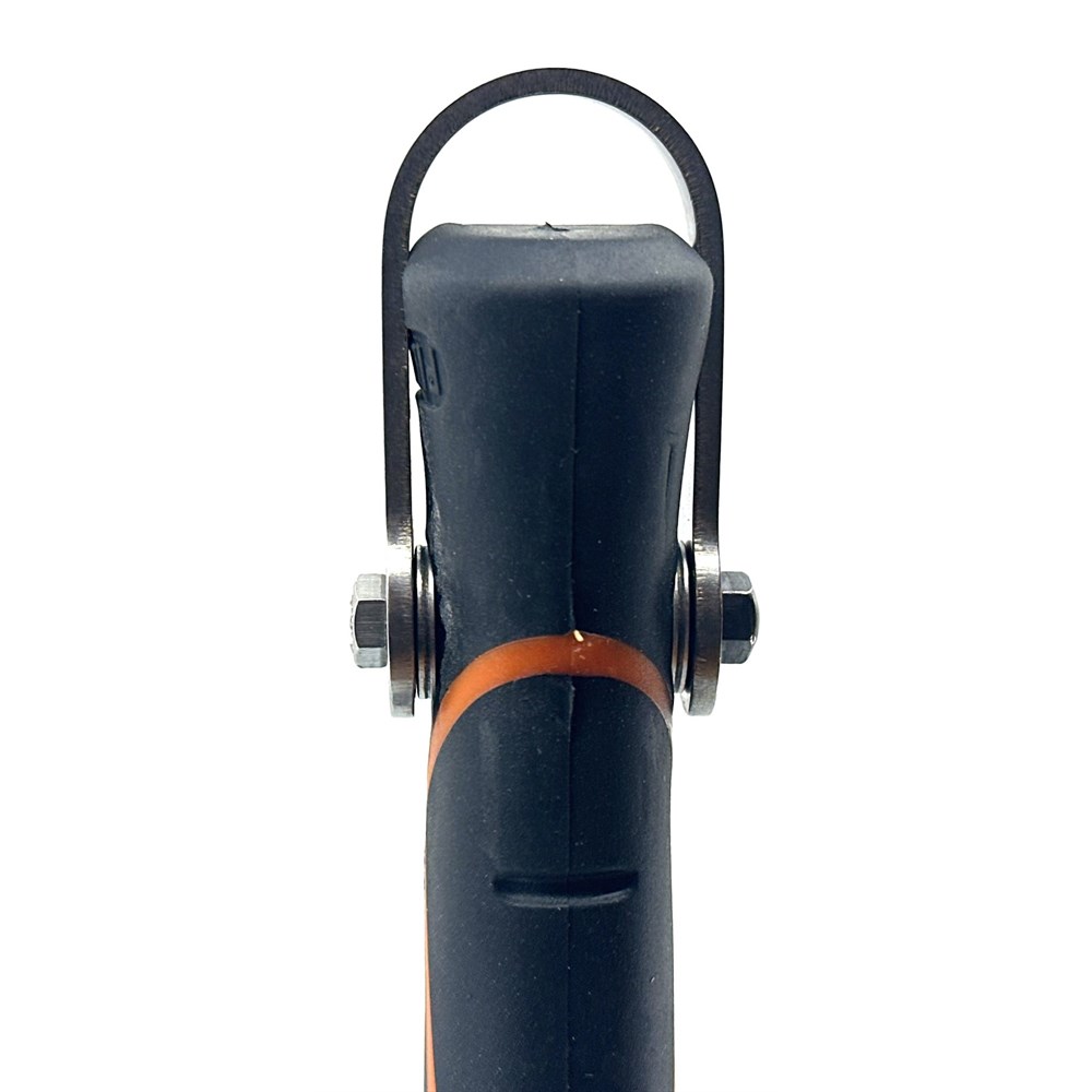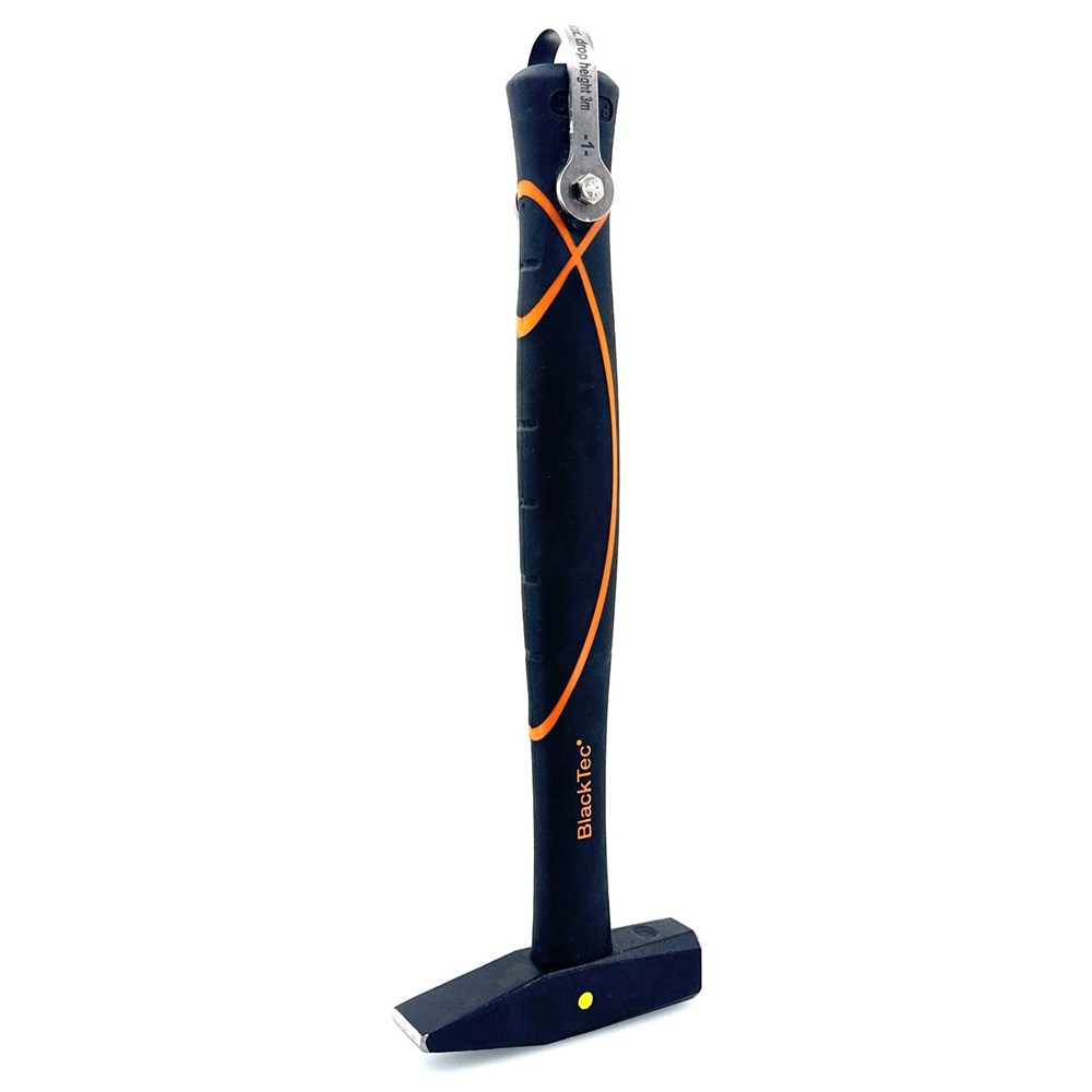 Smidd spesialstål. Glassfiberskaft dekket med beskyttende plast og gummigrep. Syrefast festebøyle og skruemateriell.