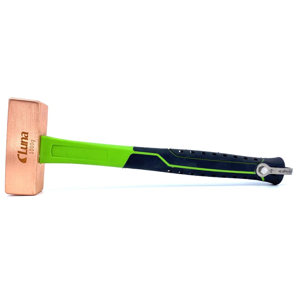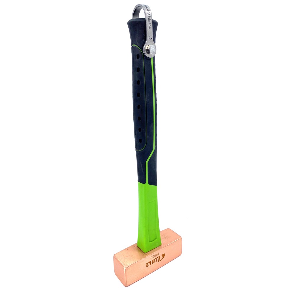 Hode av ren kobber, som gir et skånsomt slag mot følsomme materialer og flater. Hodet er sikret gjennom skaftet med en kobbersplint. Kan brukes i gnistfrie miljøer. Glassfiberskaft med spesialgummi for beste grep uansett vær.