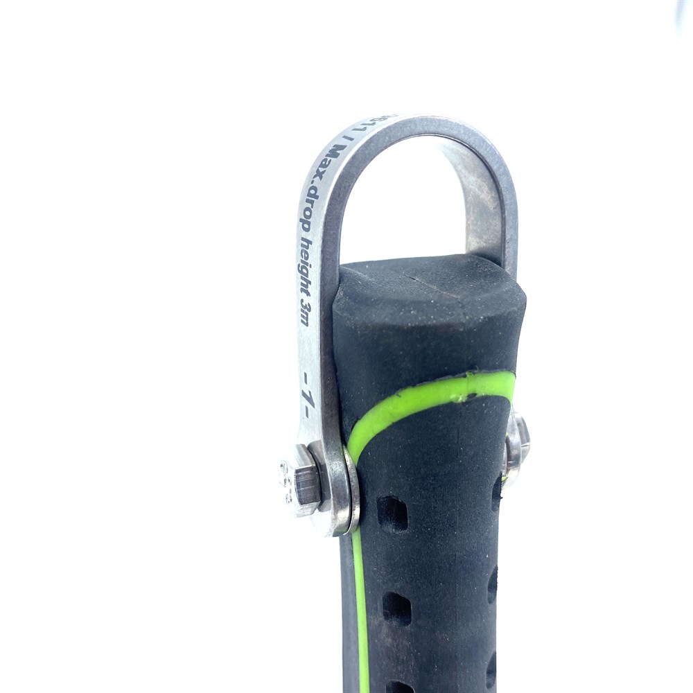 Produktet er utstyrt med et innfestningspunkt, slik at det kan sikres mot fall ved arbeid i høyden. Festebøylen er merket med serie / batch nummer, belastningsgrenser, produsent og vektgruppe. Mer info om vektgrupper finner du her.