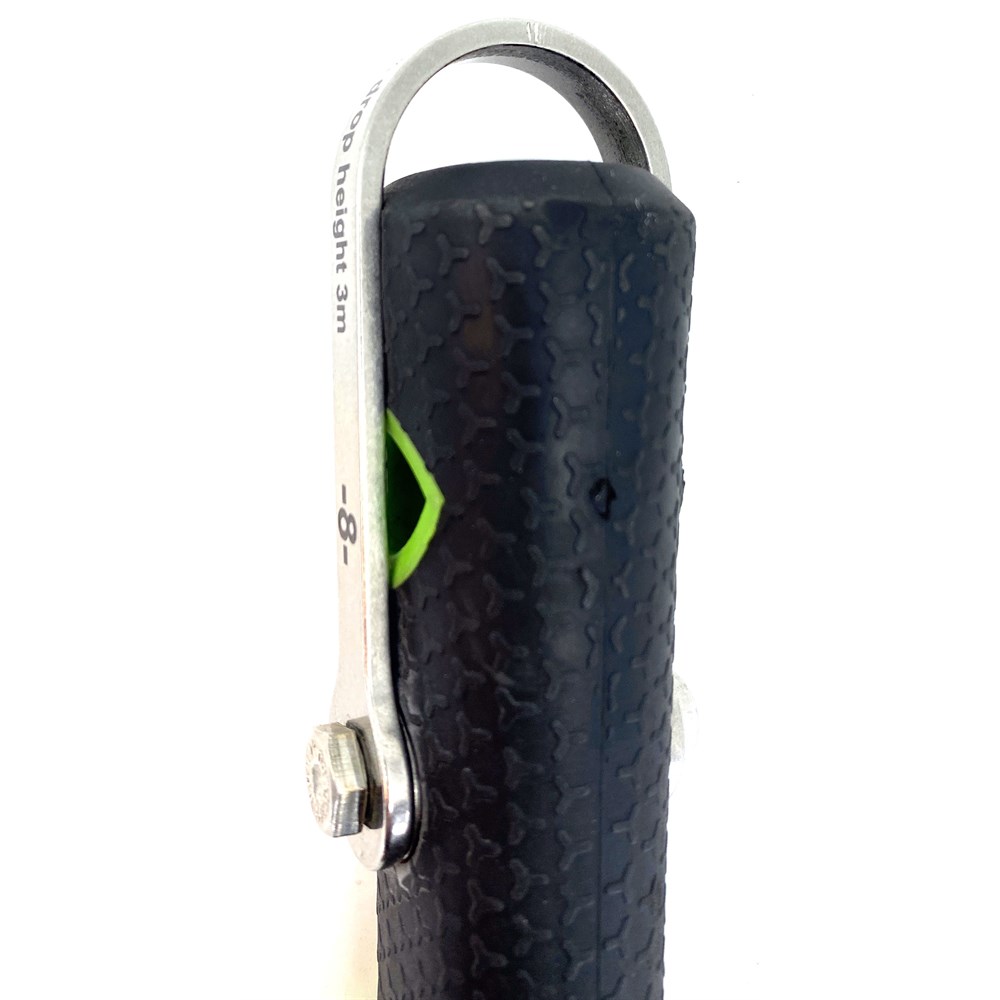 Produktet er utstyrt med et innfestningspunkt, slik at det kan sikres mot fall ved arbeid i høyden. Festebøylen er merket med serie / batch nummer, belastningsgrenser, produsent og vektgruppe. Mer info om vektgrupper finner du her.