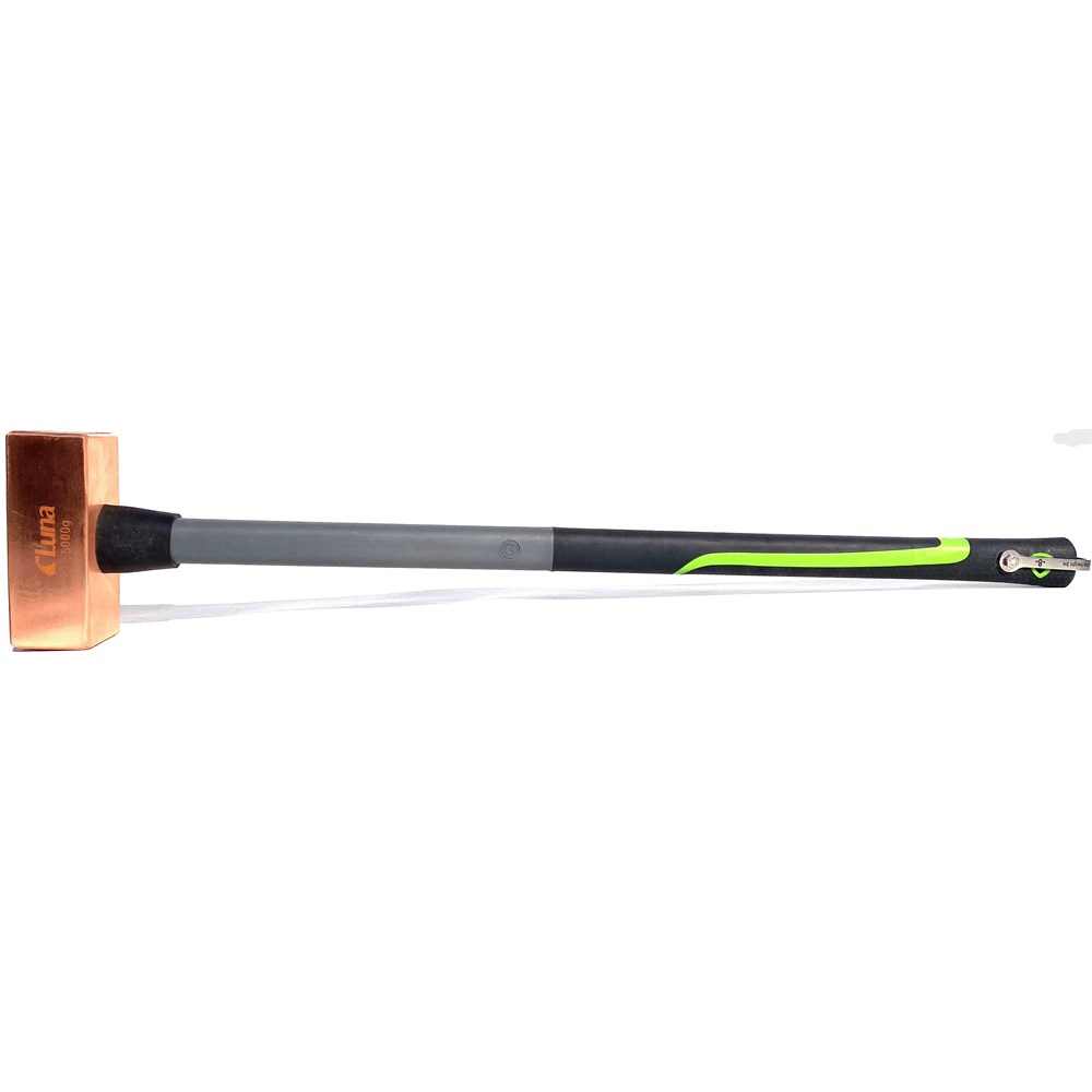 Hode av ren kobber, som gir et skånsomt slag mot følsomme materialer og flater. Hodet er sikret gjennom skaftet med en kobbersplint. Kan brukes i gnistfrie miljøer. Glassfiberskaft med spesialgummi for beste grep uansett vær.