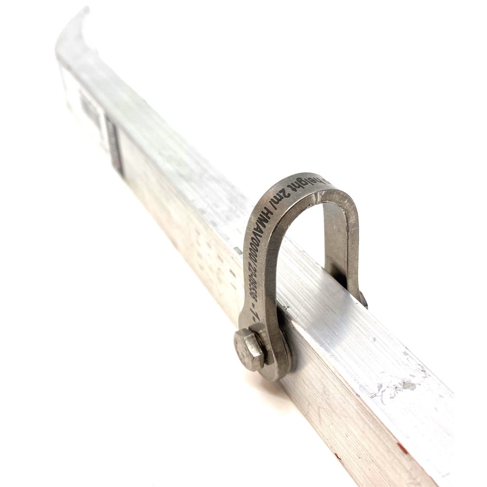 Produktet er utstyrt med et innfestningspunkt, slik at det kan sikres mot fall ved arbeid i høyden. Festebøylen er merket med serie / batch nummer, belastningsgrenser, produsent og vektgruppe. Mer info om vektgrupper finner du her.
