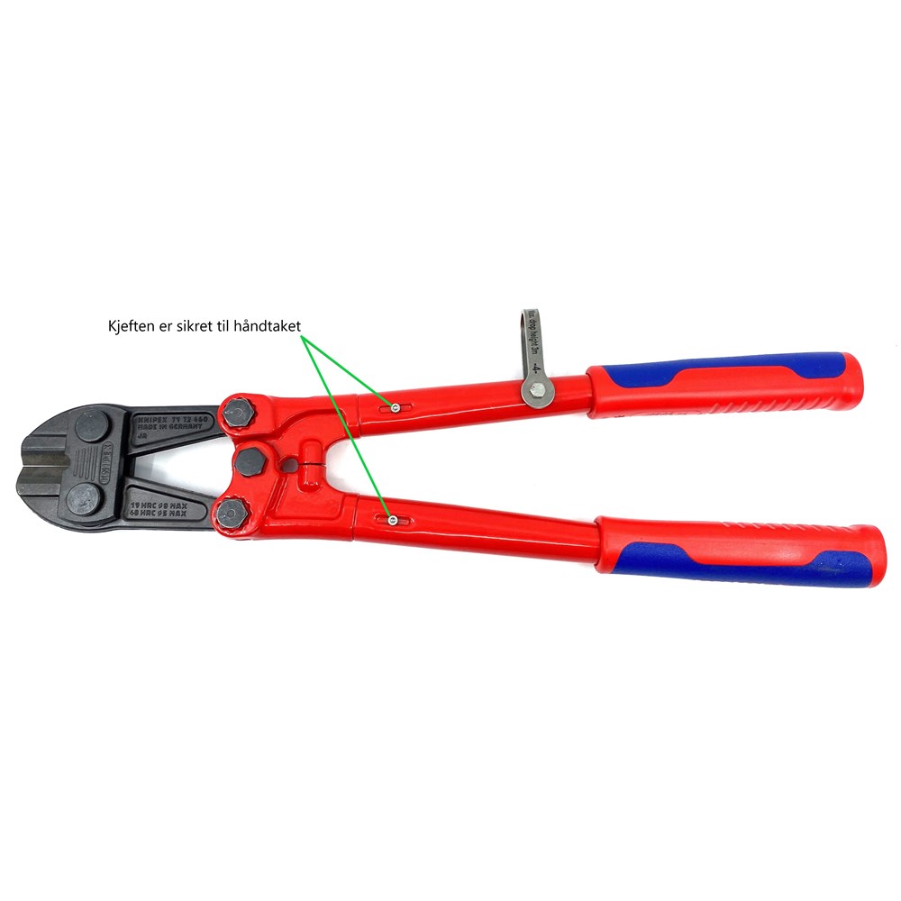 Kjeften er sikret til håndtaket, ingen løse deler.